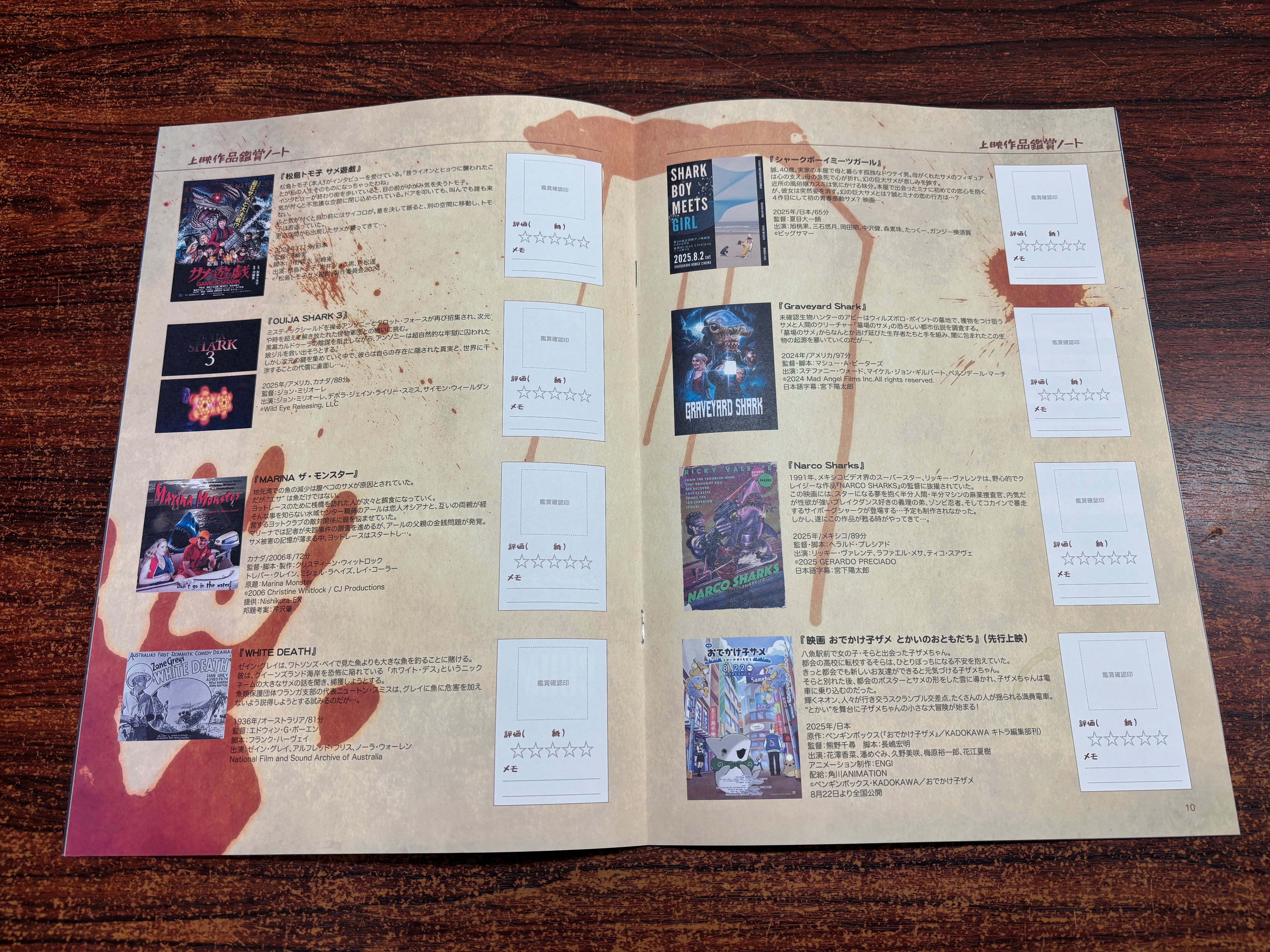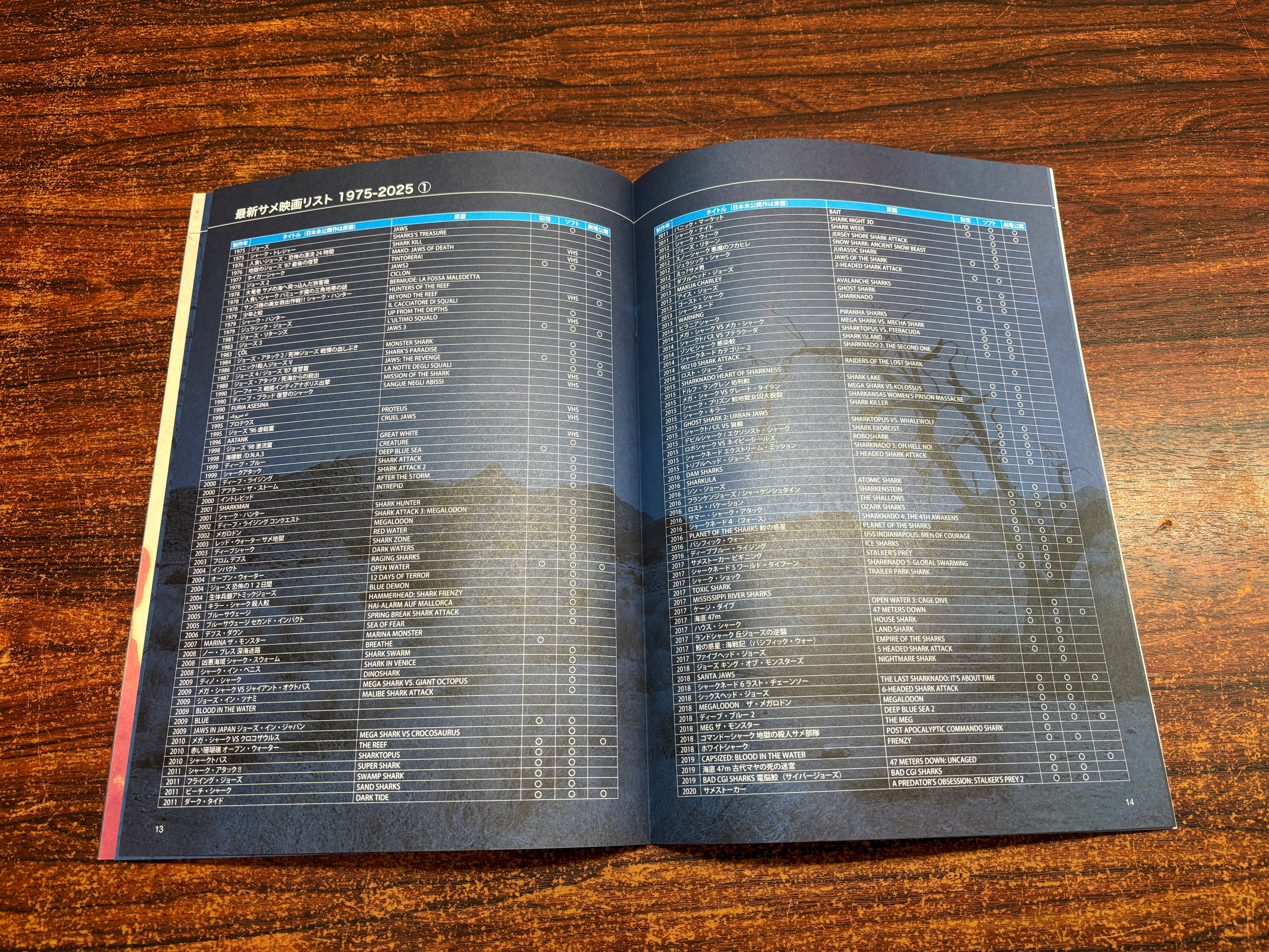 第二回の上映作品から、映画祭開催の歩み、上映作品鑑賞ノートや1975年から2025年までのサメ映画リストなど、内容盛りだくさんの映画祭パンフレットです。